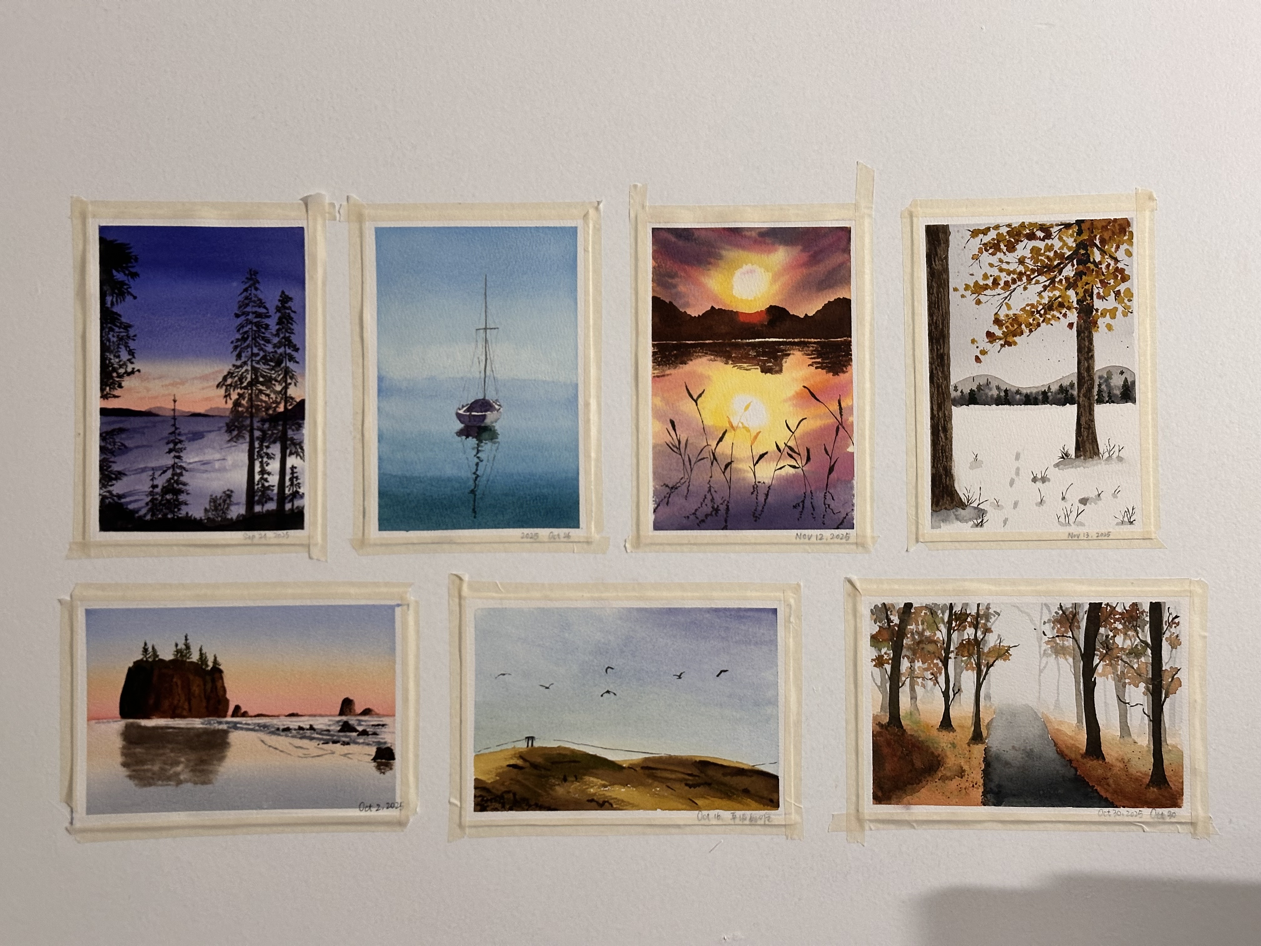 I started learning watercolor painting in the summer of 2025. I love feeling my brush touches the paper and seeing colors merge with one another. I’ve gained so much inner peace since I painted. I’ve sticked some of my paintings to the wall of my bedroom, that lightens up me a lot too!